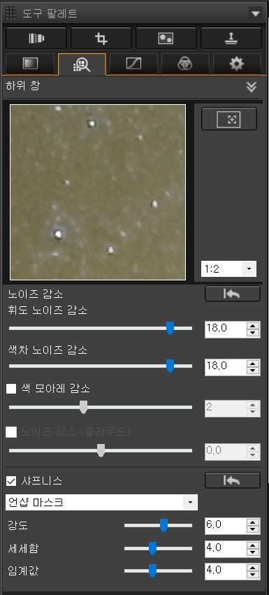 - 카메라에서는 JPG 저장 시에는 노이즈 조정 후 저장함